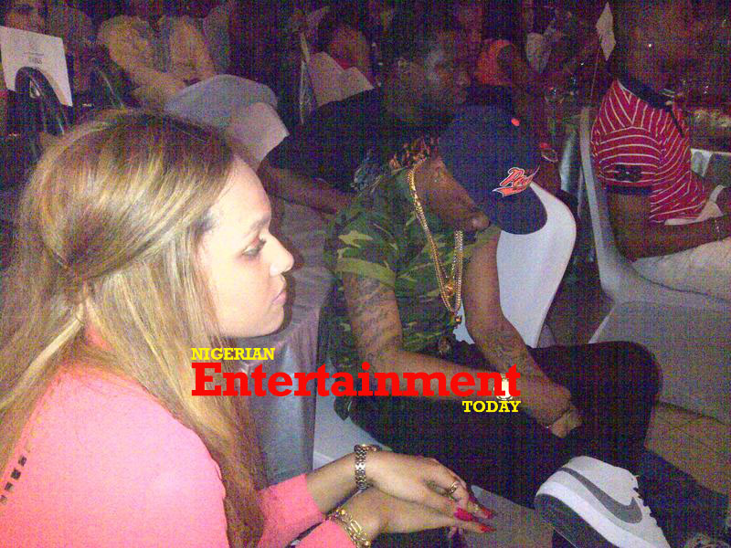Despite all these,about 3 hours after Banky W's concert commenced,in order to pay homage to his soon to be ex-boss Wizkid who flew in from London ,quietly breezed in with his girlfriend,manager and Body guard.He went and sat at the far end of the hall.Unless for few whispers and grunts from ladies who were annoyed our star boy had finally settled down, and guys who were dazzled by his bling bling and swag, he went almost unnoticed.No recognition from Banky W or Seyi Law who doubled as host/comedian..he didn't interact with Skales who was sitting in front with his own girlfriend like a boss.lol